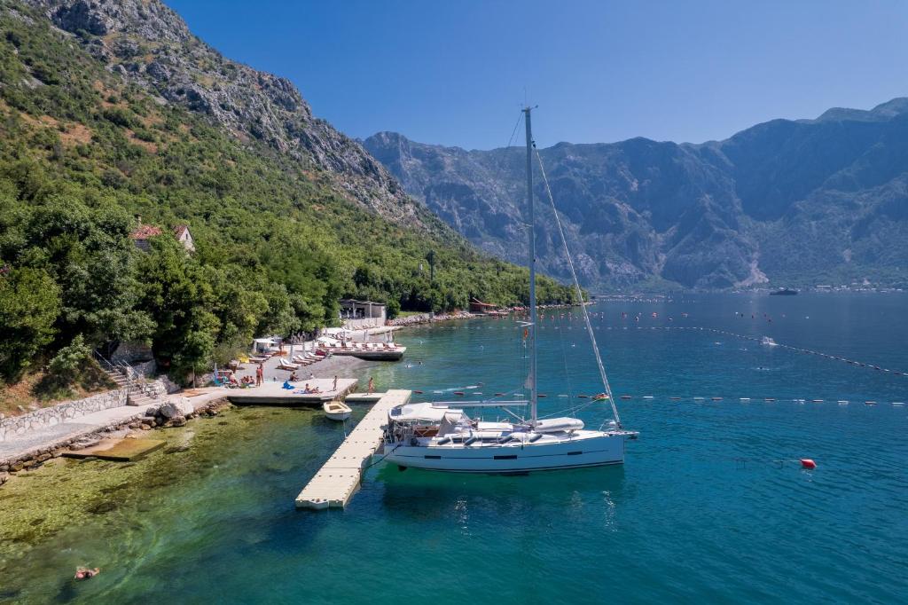 The Beach Penthouse se nalazi na adresi Dražin Vrt, ulica D3, st8, Kotor Buildings behind Bajova kula beach, Kotor, Crna Gora.